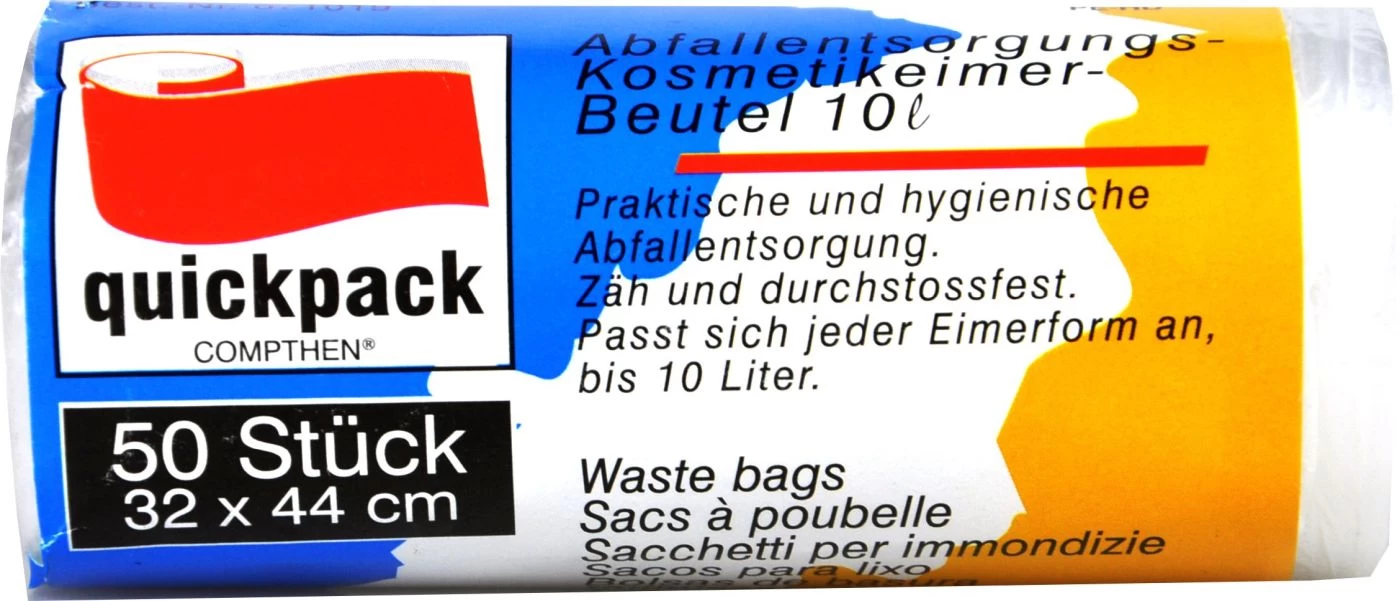 Du hast doch bestimmt auch so einen kleinen Mini-Eimer in deinem Bad. Der Abfallentsorgungs-Kosmetikeimer-Beutel von quickpack passt perfekt dort hinein. So kannst du den im Bad anfallenden Müll hygienisch entsorgen. Die Beutel sind sehr zäh und durchstoßfest, sodass du keine Angst haben musst, dass im nachhinein etwas herauskullert.