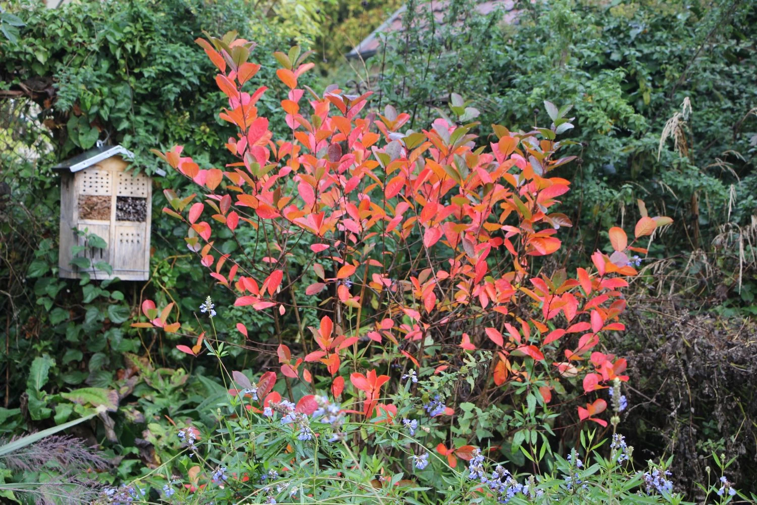 Dieses vorzügliche Vogelnährgehölz aus dem Osten Nordamerikas macht auch als Zierstrauch einiges her. So treibt das elliptisch geformte, leicht seidig glänzende Laub ab Ende April mit einer attraktiven Rottönung aus und verfärbt sich vor dem Blattfall Ende Oktober erneut von dunkelgrün nach scharlachrot.