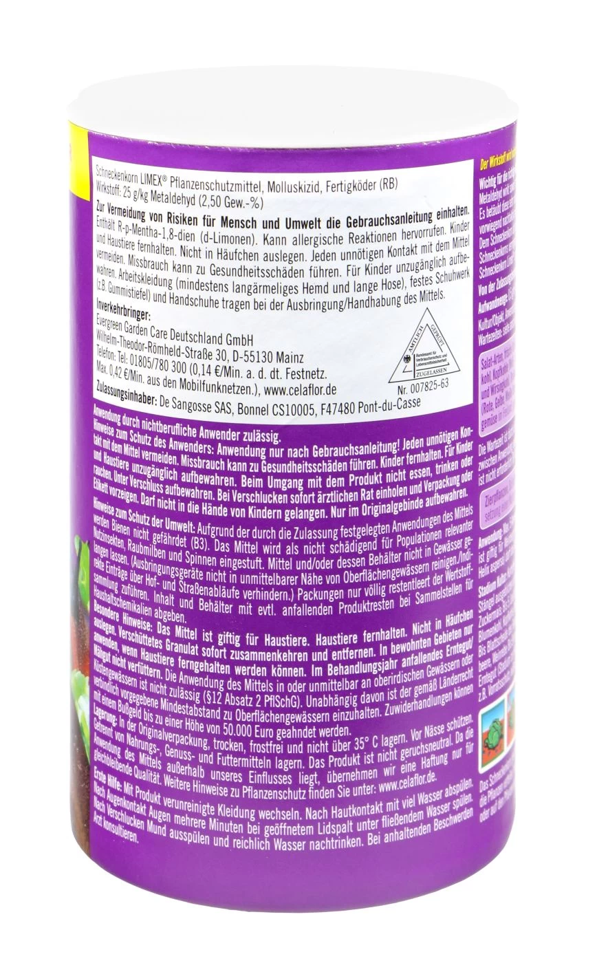 Celaflor Schneckenkorn Limex hilft dir sicher und schnell die Schneckenplage in den Griff zu bekommen. Das Granulat ist kleinkörnig, sehr ergiebig und ist super einfach anzuwenden. Du verteilst das Schneckenkorn gleichmäßig zwischen deine Erdbeeren, deinen Salat, Kohl oder deine Zierpflanzen. Jetzt heißt es nur noch abwarten.