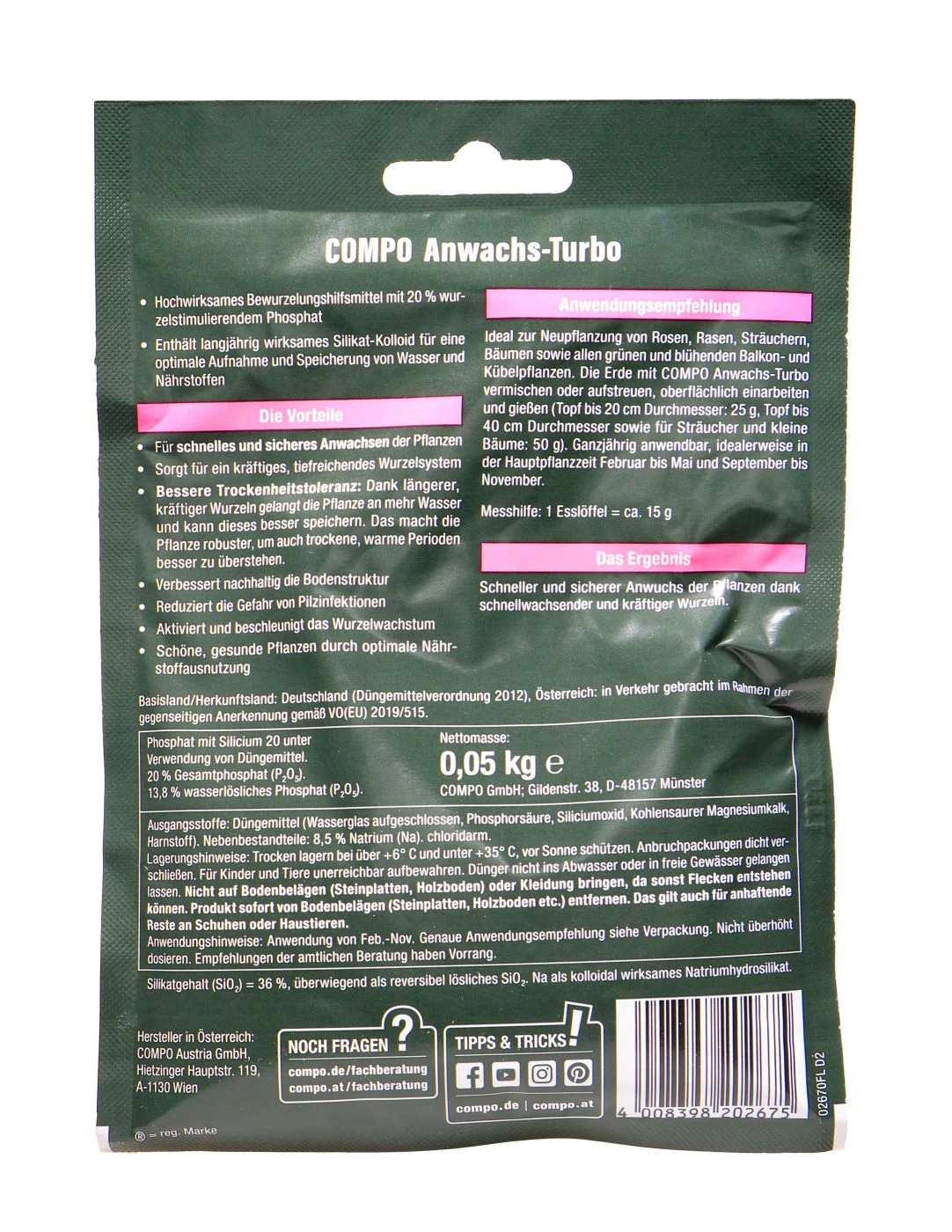 Schreibe die erste Rezension für „Compo Agrosil Wurzel Turbo – 50 G“ Antwort abbrechen
