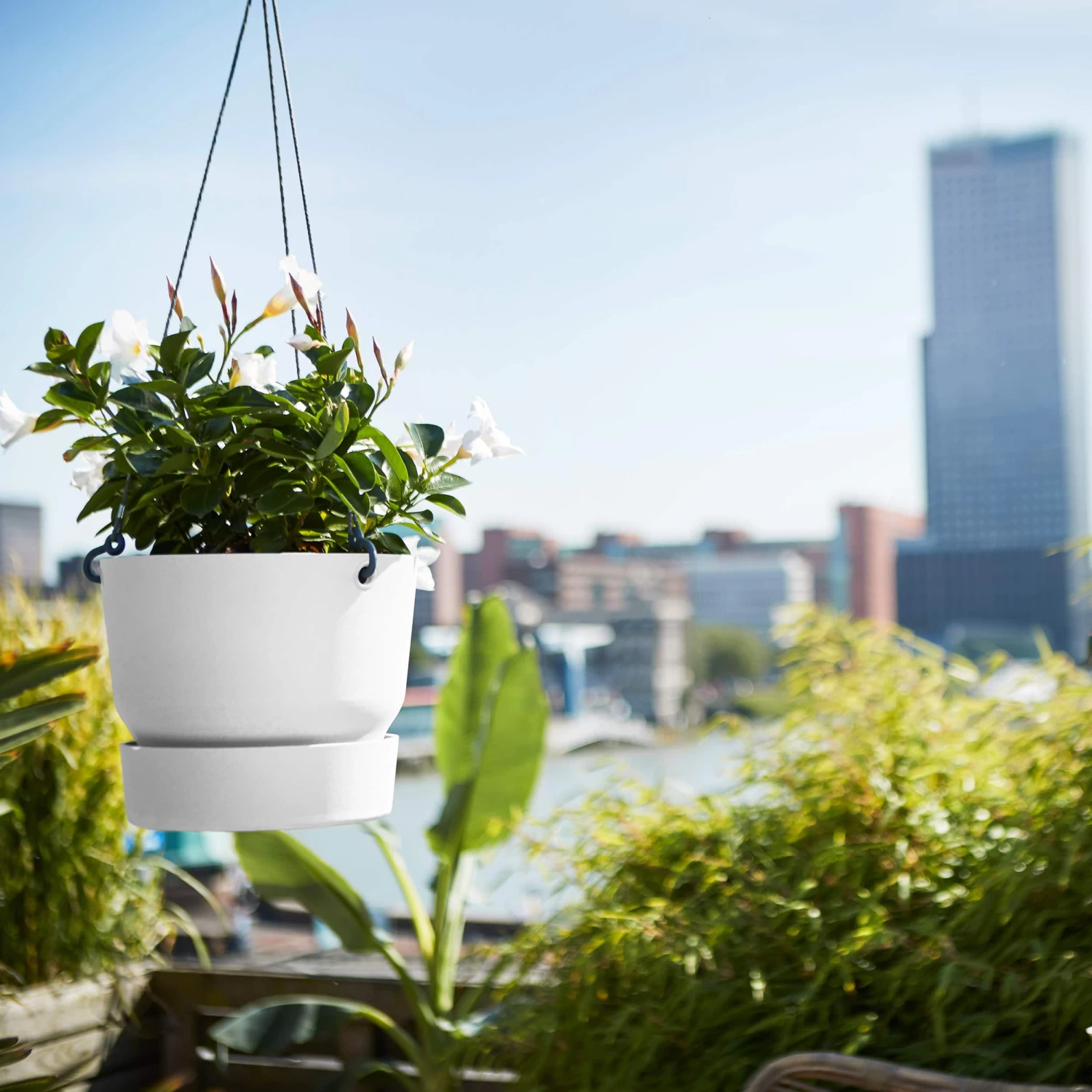 Die Design-Blumenampel greenville ist aus recyceltem Kunststoff hergestellt und begeistert durch ihr schlichtes Design. Durch ein integriertes Wasserreservoir werden die Pflanzen gleichmäßig mit Wasser versorgt, wenn du mal nicht gießen kannst. Die greenville Serie bietet dir eine Auswahl an verschieden großen Blumentöpfen, Hängetöpfen und Blumenschalen, sodass du die Gefäße gut kombinieren kannst.