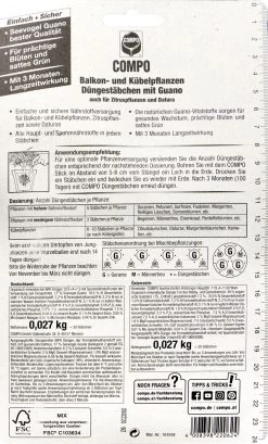 Compo Balkon- Und Kübelpflanzen Düngestäbchen Mit Guano – 30 Stück