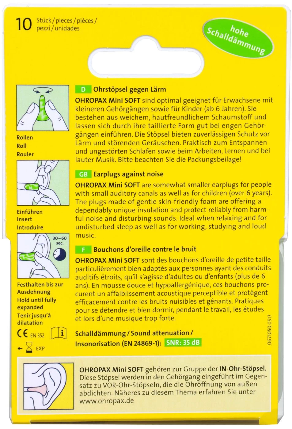 Du hast dich schonmal gefragt, warum Ohrenstöpsel bei dir nicht funktionieren? Irgendwie passen sie nicht richtig, rutschen heraus oder drücken? Möglicherweise benötigst du die Ohrstöpsel Mini Soft von Ohropax, denn diese sind für kleinere Gehörgänge gemacht.
