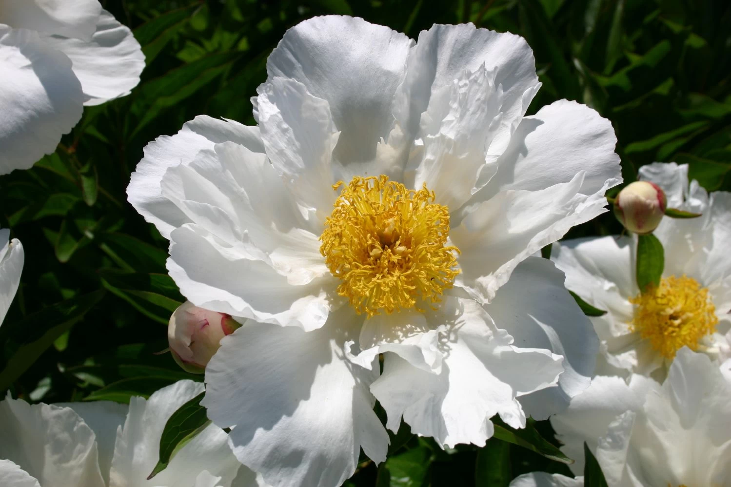 (USA Brand 1928). Einfache leuchtend weiße Blüten mit goldgelber Mitte.